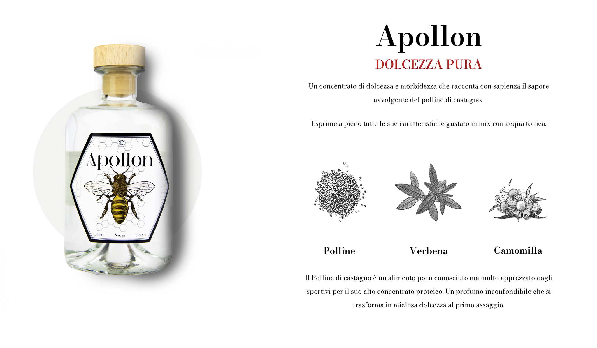 Apollon nasce invece per caso, grazie all’incontro con un produttore di miele locale. L’assaggio del suo polline di castagno BIO ci ha stuzzicato l’immaginazione e in tempi record abbiamo ideato questa ricetta fresca e piacevole, perfetta per il classico gin&tonic estivo.