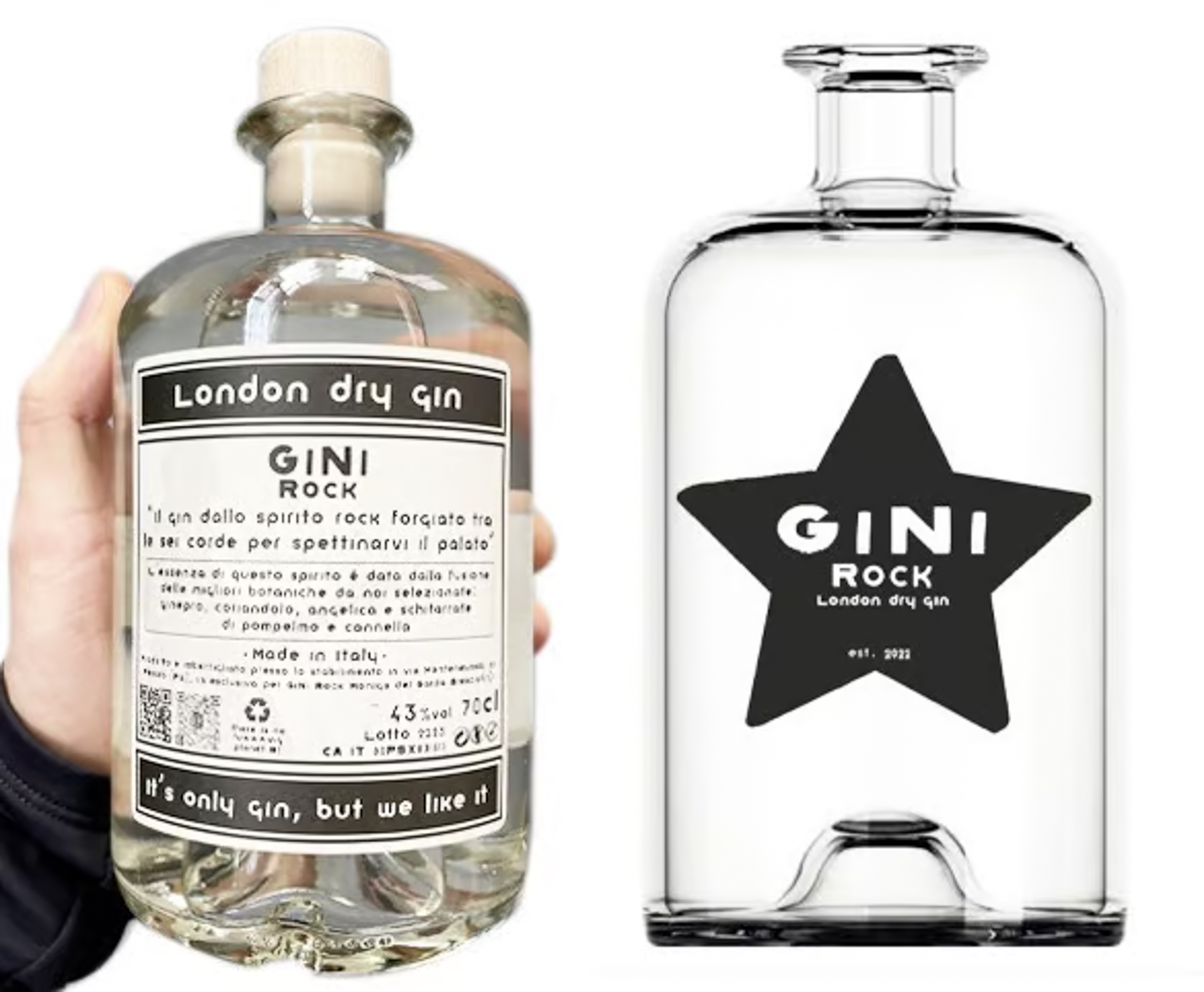 GINIROCK, (hence the name from our initials GIanluca-NIccoló), is an “old school” artisanal London Dry Gin that winks at eco-sustainability by aiming for “zero impact”, which is why we use an electric still powered by solar panels, 100% recycled packaging, bottles, labels and botanicals selected from organic farming.