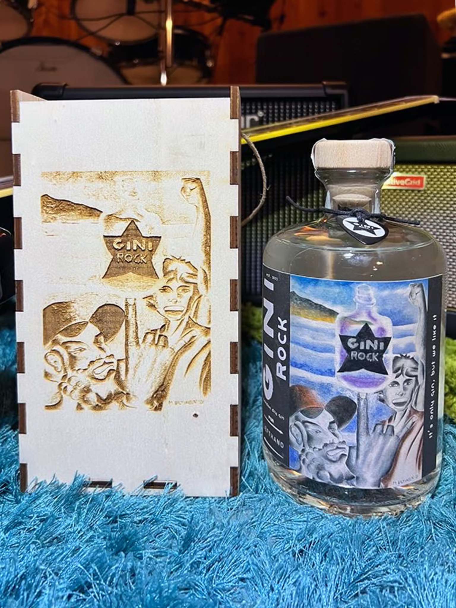 The meeting between the nocturnal lifestyle between clubs, stages and cellars and the passion for the explosive, crystalline and true taste of the six fiery strings has forged a Gin created to spread the aroma of pure Rock and Roll style!