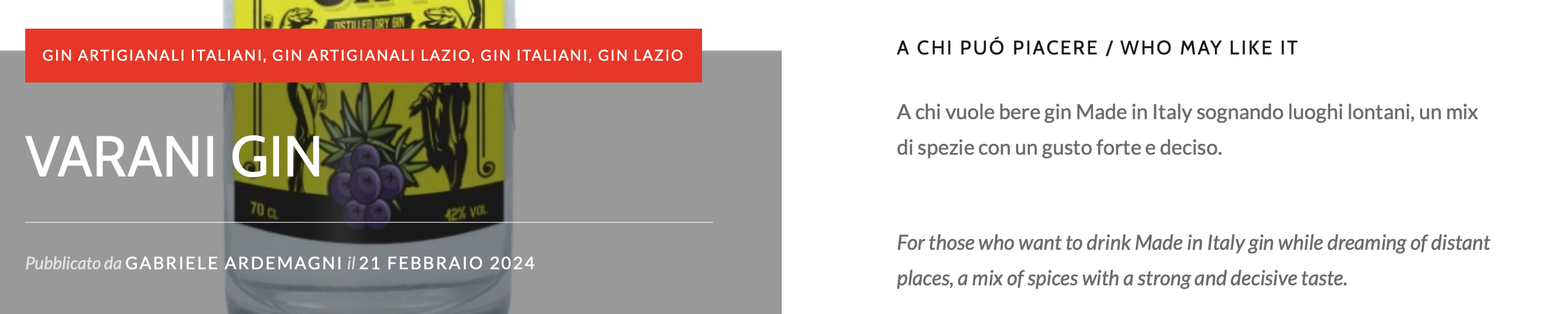 In cosa consiste? Semplicemente in un riassunto di una due righe che parla del gin e a che tipo di palato o situazione/stagione lo consigliamo.