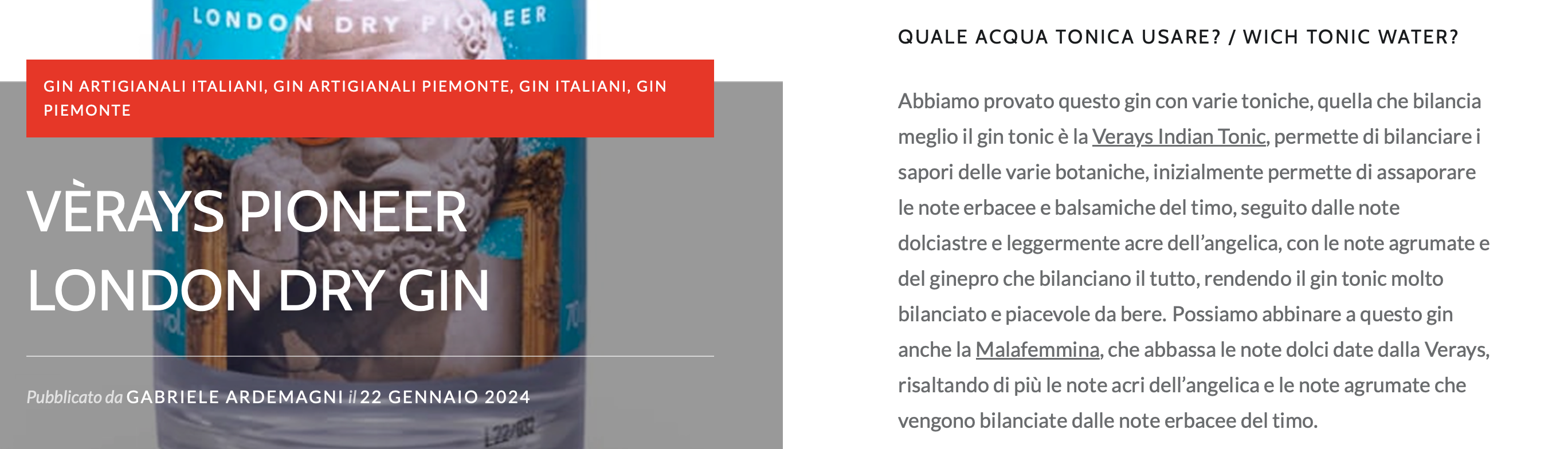 The second innovation concerns the tonic waters used in the tests. For each gin card, the name of the tonic, if present on the blog, is linked directly to its card, creating further interactivity in the blog and making it easier for readers to find the products within the many pages.