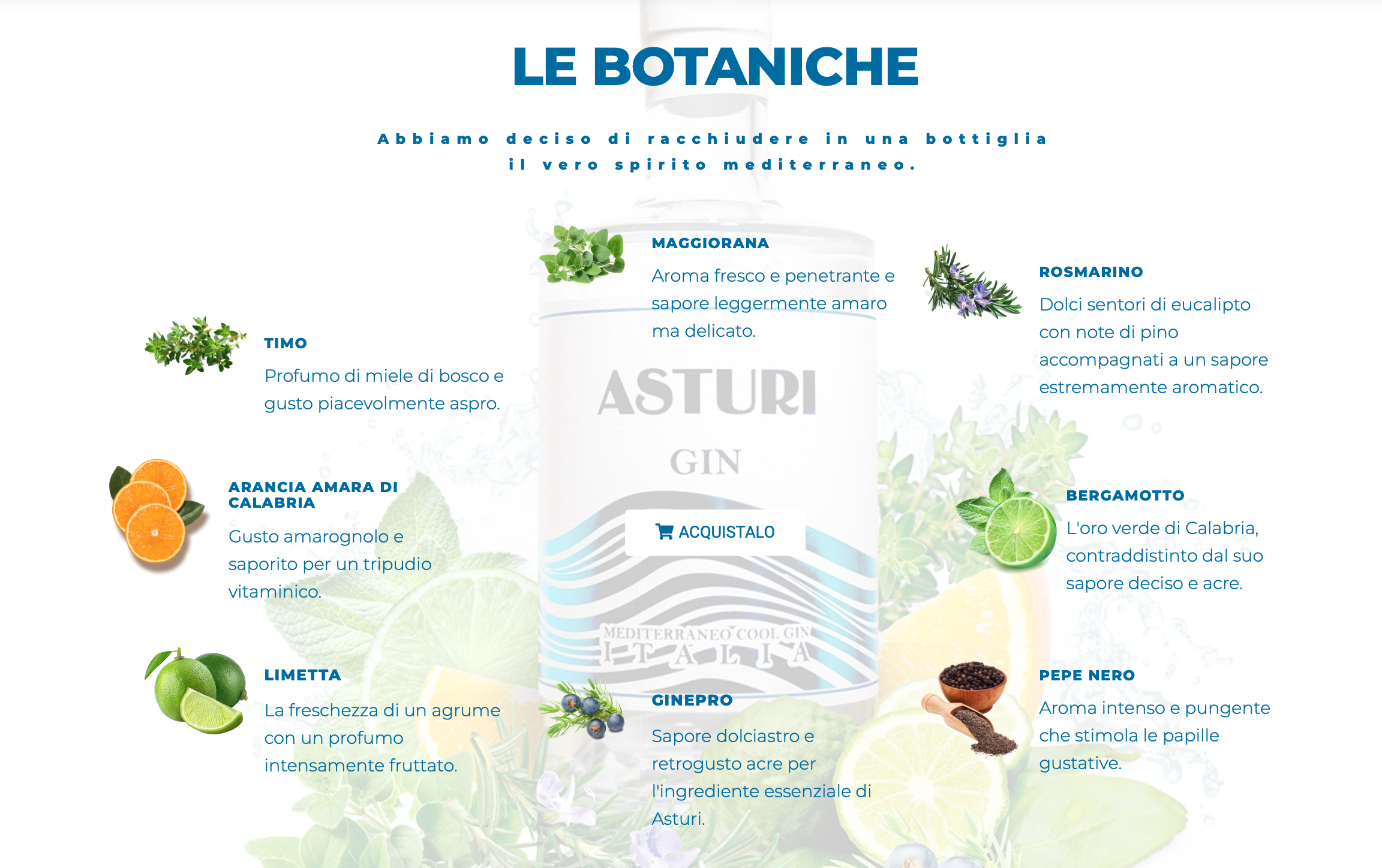 Our origins: The name of the distillate lies in the desire to always carry its origins with it. The Asturi forest, located in the Carfizzi natural park, is a place rich in vegetation of the Calabrian hinterland, where the combination of lush nature and freshness of the water finds its maximum expression.
