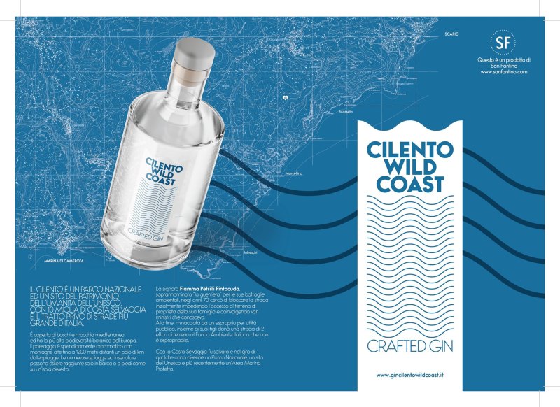 La distilleria mi disse: “Non abbiamo mai prodotto niente di piu’ buono, gli ingredienti sono semplicemente straordinari”. Avevamo ideato uno dei migliori gin artigianali con cui pubblicizzare la Costa Selvaggia del Cilento. Infatti sulla bottiglia c’e’ la mappa topografica del tratto di costa fra Scario e Marina di Camerota che e’ di gran lunga il tratto di costa priva di strade di tutta l’Italia continentale.